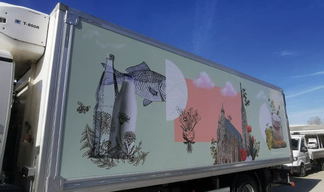 SAMS frame system Truck advertising banner for Hofer in Trumau