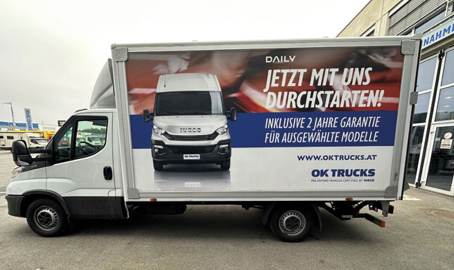 LKW Werbebanner für OK Trucks bei Iveco Wien