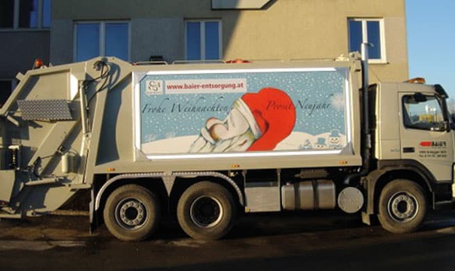 SAMS-Rahmensystem ermöglicht lebendige und farbenfrohe Erscheinungen auf Ihrem Fahrzeug. Auf diese Weise können Unternehmen auf sich und Ihr Angebot aufmerksam machen. Auch Müllfahrzeuge können mit unserem System aufgewertet werden.