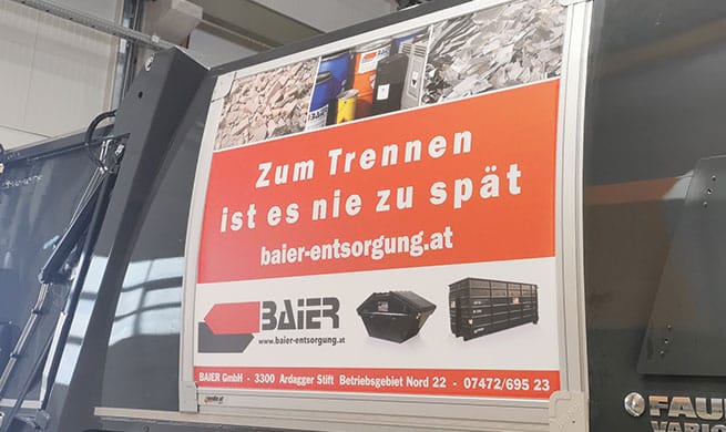 SAMS Rahmensystem LKW Werbung für Laimer