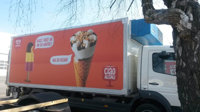 Movertising© / SAMS Rahmensystem LKW Werbeplane für Pringles