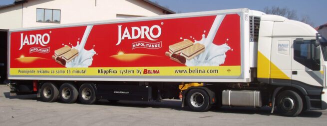 LKW Werbung mit dem SAMS Rahmensystem bi...
