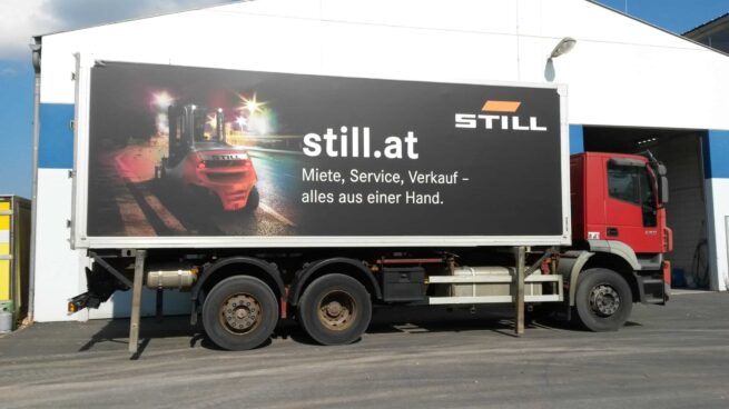 Sichern Sie sich eine kontinuierliche Markenpräsenz rund um die Uhr mit unserer LKW Werbung. Dank unseres SAMS Rahmensystems bleibt Ihre Werbebotschaft auch während der längsten Fahrten immer sichtbar. Profitieren Sie von dieser dauerhaften Präsenz, um Ihre Marke in den Köpfen Ihrer Zielgruppe zu verankern.