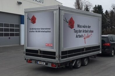 LKW-Werbung wird mit dem SAMS-Werberahme...
